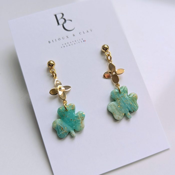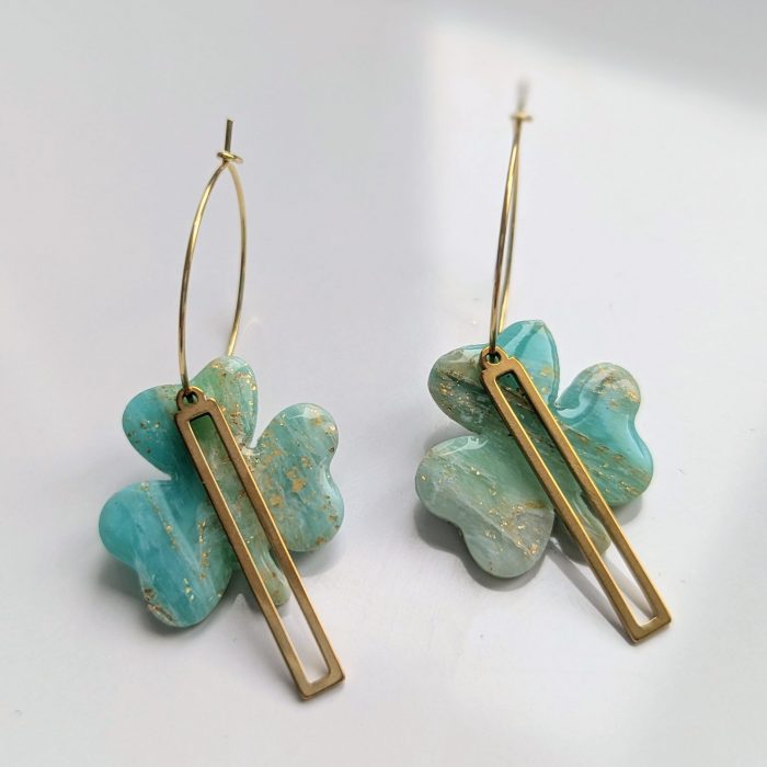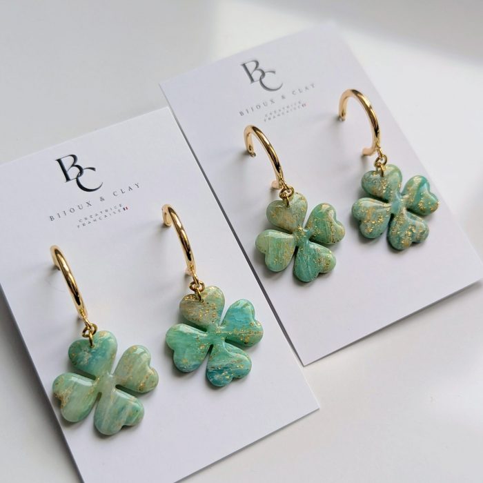 L’argile polymère est idéale pour les boucles d’oreilles car elle permet de créer des designs volumineux tout en restant extrêmement légère, offrant ainsi un confort maximal sans alourdir les oreilles.