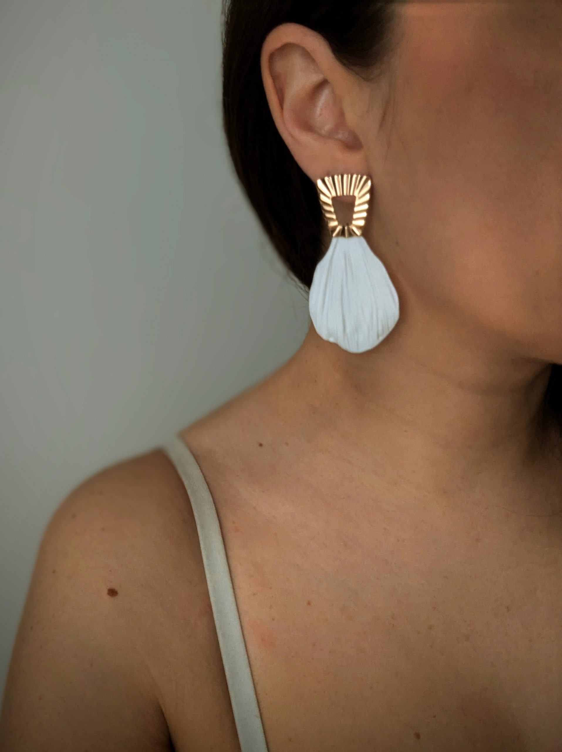 Apportez une touche de pureté et d’élégance à votre look avec ces boucles d’oreilles, ornées de délicates pétales blanches qui capturent la lumière et subliment chaque mouvement